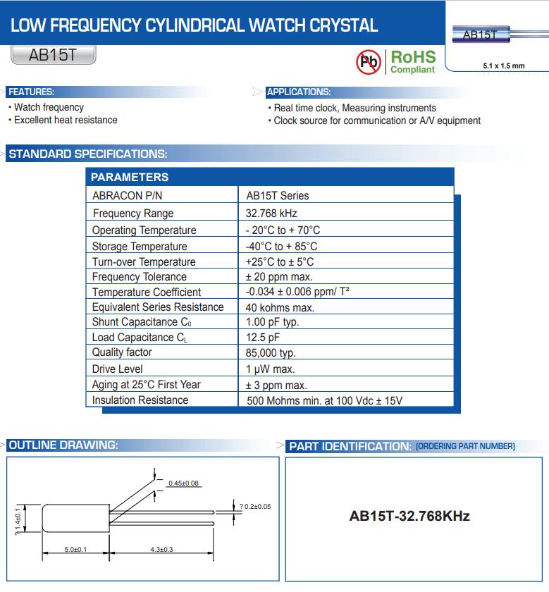 更多>>艾博康晶振,AB15T系列型號(hào)晶振,32.768KHZ晶振