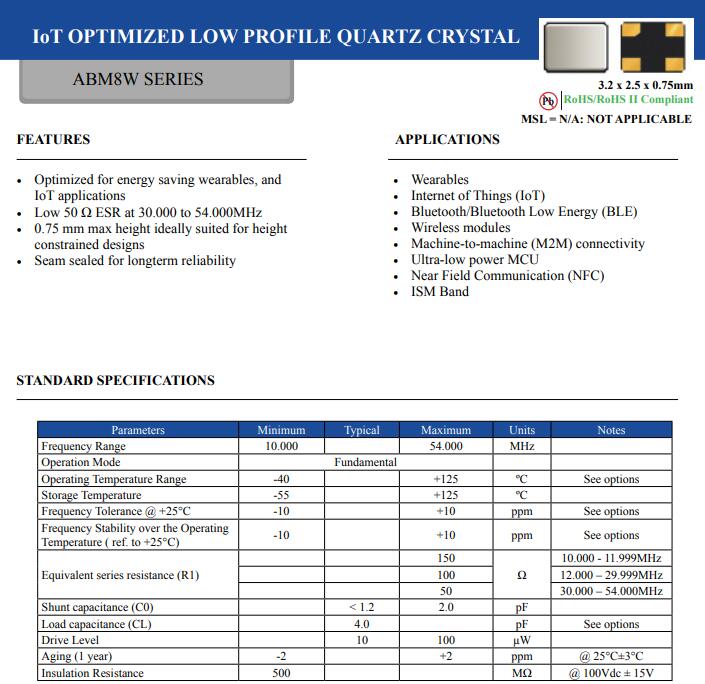 什么使IoT打勾? Abracon晶振的低等效串聯電阻(ESR)和低負載電鍍電容(CL)晶體是綠色和節能MCU和便攜式通信的理想選擇芯片組。 在降低功耗的競爭中,許多片上振蕩器正在被匱乏輸出驅動,通常不能使用標準晶體維持振蕩。 Abracon的最新系列用于微功率應用的石英晶體克服了這些挑戰。