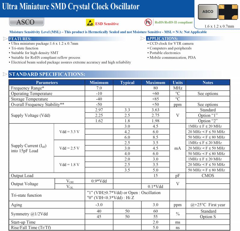 ABRACON晶振 | 標示 | ASCO系列晶振 | 晶振基本信息對照表 |
