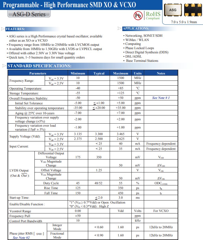 艾博康晶振,差分晶振,ASG-D-V-A-1.000GHZ晶振