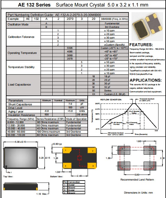 Anderson晶振|AE-132-A-1-2070-2-18-38M4000|6G無線通訊晶振規格表