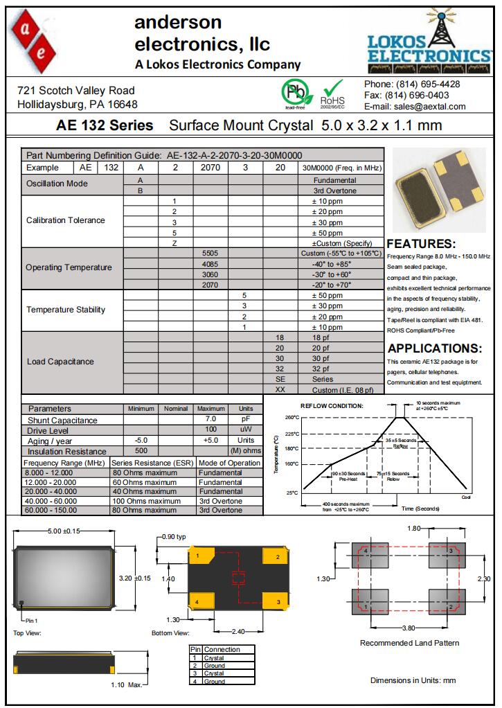 Anderson晶振|AE-132-A-1-2070-2-18-38M4000|6G無線通訊晶振,歐美進口晶振,Anderson晶振,AE-132石英晶振,無源晶振,AE-132-A-1-2070-2-18-38M4000晶振,四腳貼片晶振,5032mm晶振,晶體諧振器,頻率38.4MHz,負載18pF,工作溫度-20~70°C,頻率容差10pm,高精度晶振,輕薄小晶振,高可靠性晶振,6G無線通訊晶振,尋呼機晶振,移動電話晶振,測試與測量設備晶振.