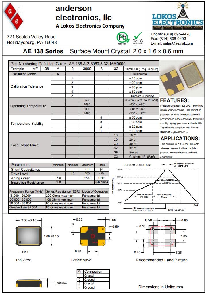 更多>>Anderson晶振|AE-138-A-2-5505-3-32-16M0000|2016超小型晶振