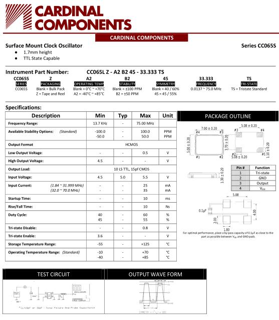 更多>>卡迪納爾進(jìn)口晶振,CC065S貼片有源晶振,CC065LZ-A2B245-16.000TS晶振