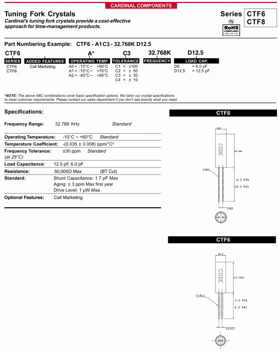 卡迪納爾晶振,CTF6圓柱晶振,CTF6-A1C3-32.768K-D6晶振