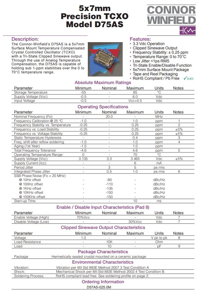 康納溫菲爾德晶振,D75AS晶振,7050溫補晶振