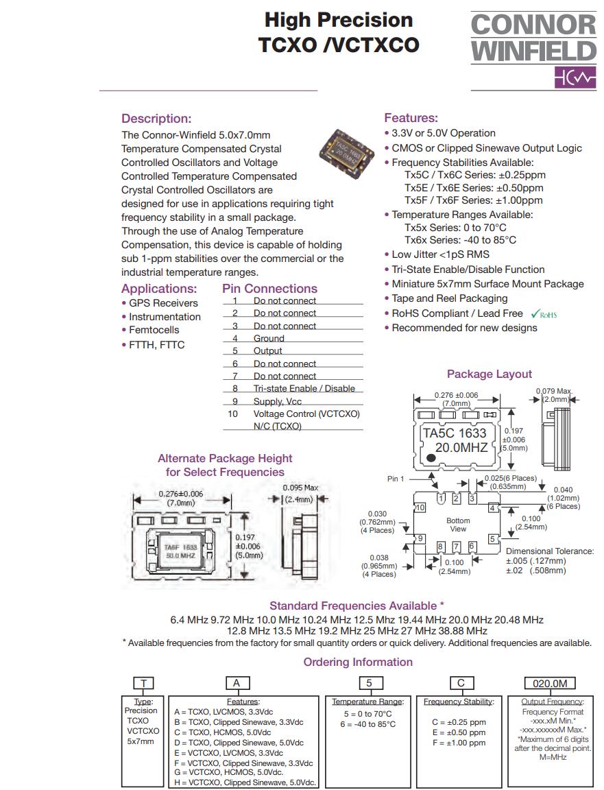 康納溫菲爾德晶振,TX180晶振,7050溫補晶振