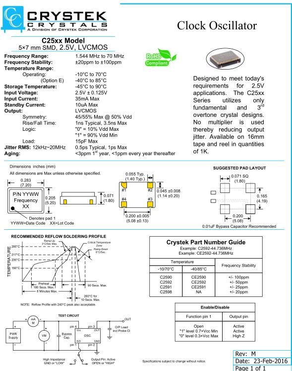 Crystek進口晶體,C25xx系列有源振蕩器,C2592-20.000MHz晶振