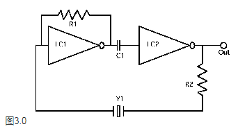 如果我們繼續增加頻率,我們將達到另一個零相位點,稱為"反"或"平行"諧振點,此時,石英晶體單元的電阻最大,電流最小,該頻率固有地不穩定,不應選擇作為振蕩器的工作頻率,圖2.0還示出了被識別為"通常并聯共振區域"的區域,出于我們的目的,我們將該區域內的頻率視為"并行"頻率,正如有兩個與石英晶體相關的零相位頻率,有兩種基本類型的振蕩器,與晶體一樣,第一種稱為串聯諧振型,圖3.0所示的串聯諧振電路能夠在發生晶體故障時以某種非晶體控制頻率振蕩,如果需要,該電路不提供頻率調整,該電路有時也很難啟動,此外,真正的串聯電路在生產中非常難以實現,因此輸出頻率通常與設計參數略有不同(如果僅有的話).