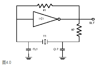 第二種類型的電路是"并聯諧振"電路,如圖4.0所示,您將立即注意到包含兩個電容,稱為CL1和CL2,這些電容器位于石英晶體振蕩器外部,具有將諧振頻率提高到高于串聯諧振頻率的效果,特別注意,振蕩器頻率增加而不是晶體頻率,這個頻率通常被稱為"并行"頻率,但實際上這是一個誤稱,該頻率來自包含電容器,應恰當地稱為"負載諧振"頻率,由于電容器將頻率增加到高于串聯諧振頻率的點,因此必須仔細計算和指定它們的值.