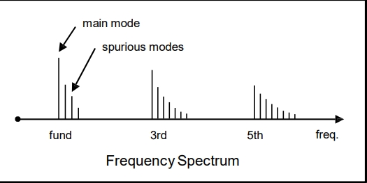 -當(dāng)雜散模式的信號(hào)電平與主模式一樣強(qiáng)時(shí),振蕩器可以工作在雜散模式而不是主模式上。這種現(xiàn)象被稱為模式跳變。雜散模式通常定義為電阻比或?qū)χ髂J降膁B抑制。為了避免大多數(shù)振蕩器的模式跳變,需要與主模式的電阻比為1.5或2.0。這大約相當(dāng)于主模式上-3dB到-6dB的信號(hào)抑制。