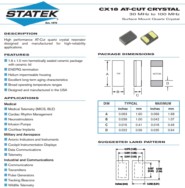 Frequency頻率 | 20 MHz | Termination 腳位 | 4 pad |