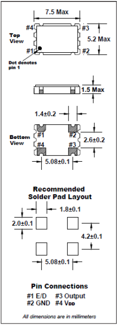 Size/Dimension尺寸 | 7.50mm x 5.20mm | 最小包裝數(shù)MPQ: | 1000 |