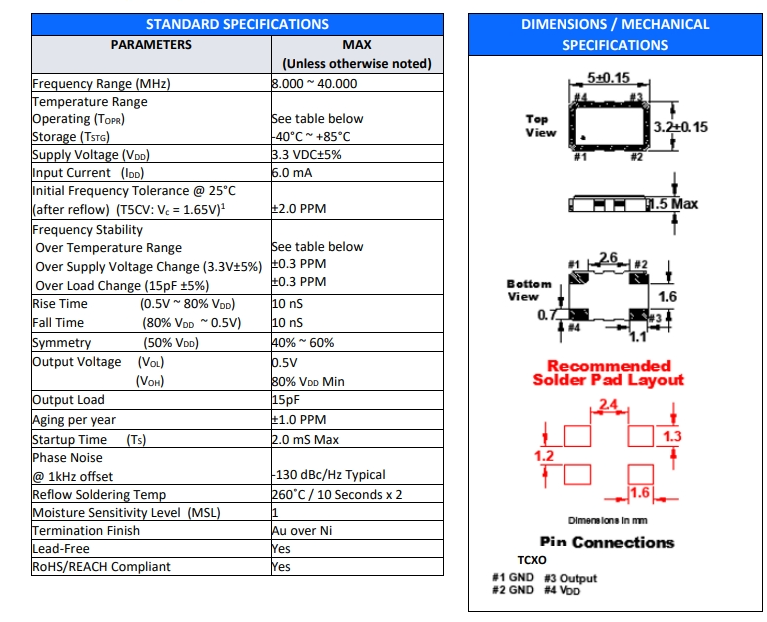 Type類型 | TCXO | PackageHeight高度 | 1.50mm |