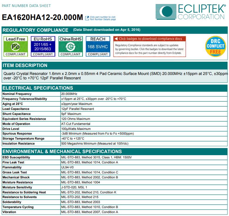 日蝕晶振,EA1620HA12-20.000M晶振,2016mm晶振本身體積小,超薄型石英晶體諧振器,特別適用于有目前高速發展的高端電子數碼產品,因為晶振本身小型化需求的市場領域,小型?薄型是對應陶瓷諧振器(偏差大)和普通的石英晶體諧振器(偏差小)的中間領域的一種性價比較出色的產品.產品廣泛用于筆記本電腦,無線電話,衛星導航HDD, SSD, USB, Blu-ray等用途,符合無鉛焊接的高溫回流焊曲線特性.