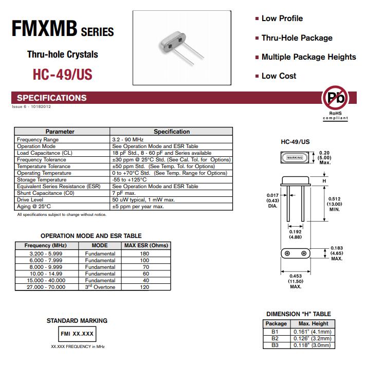 FMI晶振,FMXMB晶振,二腳插件晶振