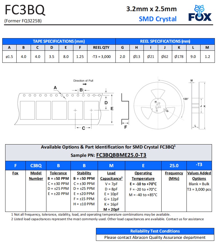 FC3BQBBME16.0-T1,FOX超小型晶振,3225mm石英晶體,安防設備晶振,規格表