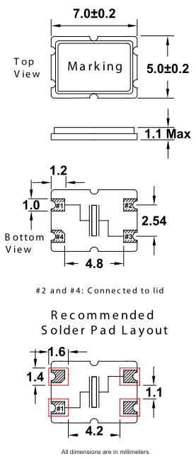FOX晶振,FC7BACBMI20.0-T1,6G光纖通道晶振尺寸圖