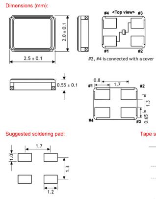 standard ±30 ppm available ±10 ~ ±50 ppm |