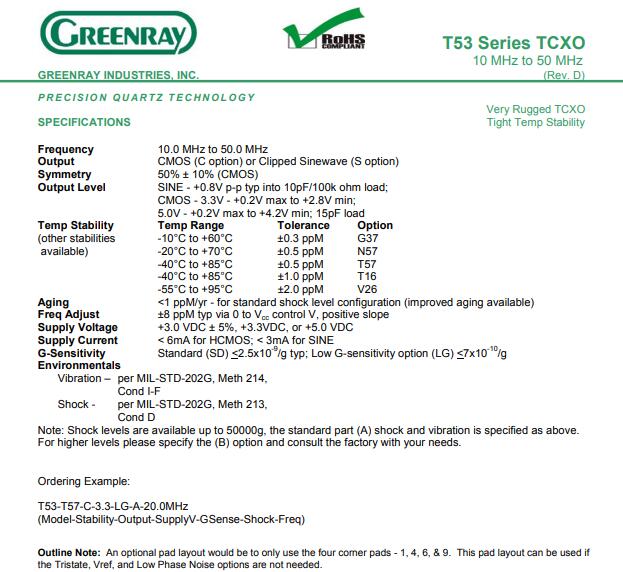 更多>>GREENRAY晶振,T53系列晶振,5032溫補(bǔ)晶振