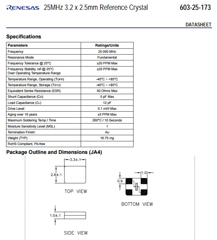 更多>>IDT晶振,603-25-173JA4I晶振,25M石英晶振