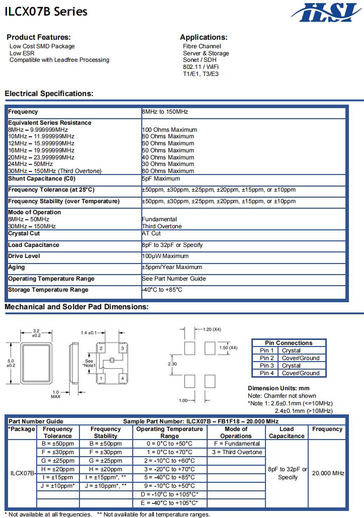 ILCX07-FB5F12- 20.000 MHz | ILSI | ILCX07 | -40°C ~ 85°C | 20 MHz | ±30ppm | 12 pF |