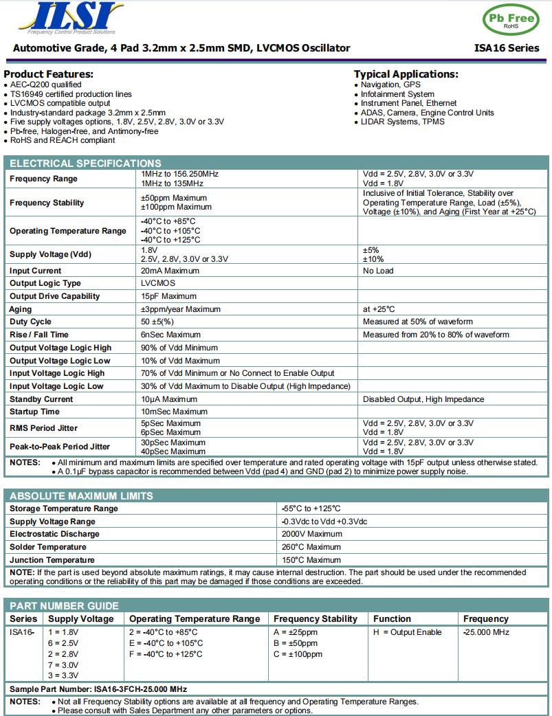 ILCX13-FF5F18- 25.000 MHz | ILSI | ILCX13 | -40°C ~ 85°C | 25 MHz | ±30ppm | 18 pF |