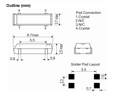 IQD音叉晶振,85SMX千赫晶體,6G相關設備晶振尺寸圖