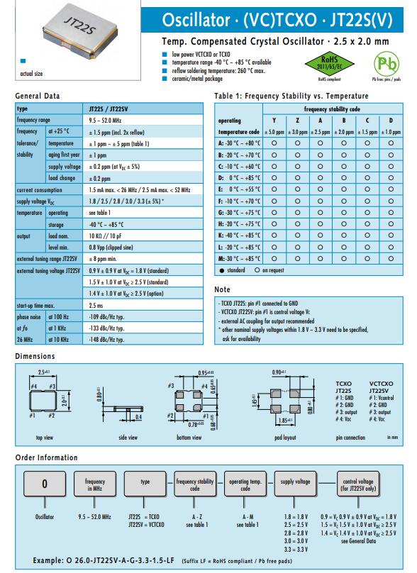 德國JAUCH晶振,JT22S/JT22SV晶振,TCXO晶振