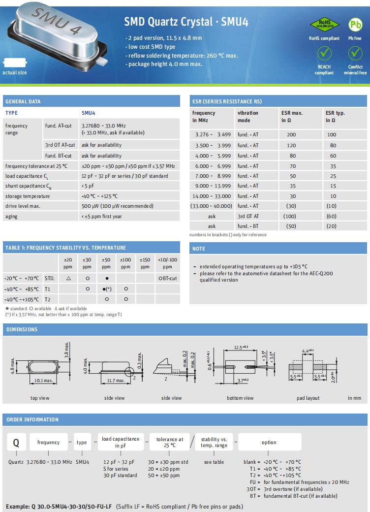 Jauch品牌-Q 25.0-SMU4-12-20/30-T1-FU-LF-6G網(wǎng)絡(luò)終端晶振,Jauch晶振,SMU4無源晶振,Q 25.0-SMU4-12-20/30-T1-FU-LF晶振,貼片石英晶振,石英晶體諧振器,頻率25MHz,負載12pF,工作溫度-40~85°C,頻率穩(wěn)定性30ppm,高穩(wěn)定性晶振,抗沖擊晶振,高質(zhì)量晶振,6G網(wǎng)絡(luò)終端晶振,消費電子產(chǎn)品晶振,智能家居晶振,電視機頂盒晶振.