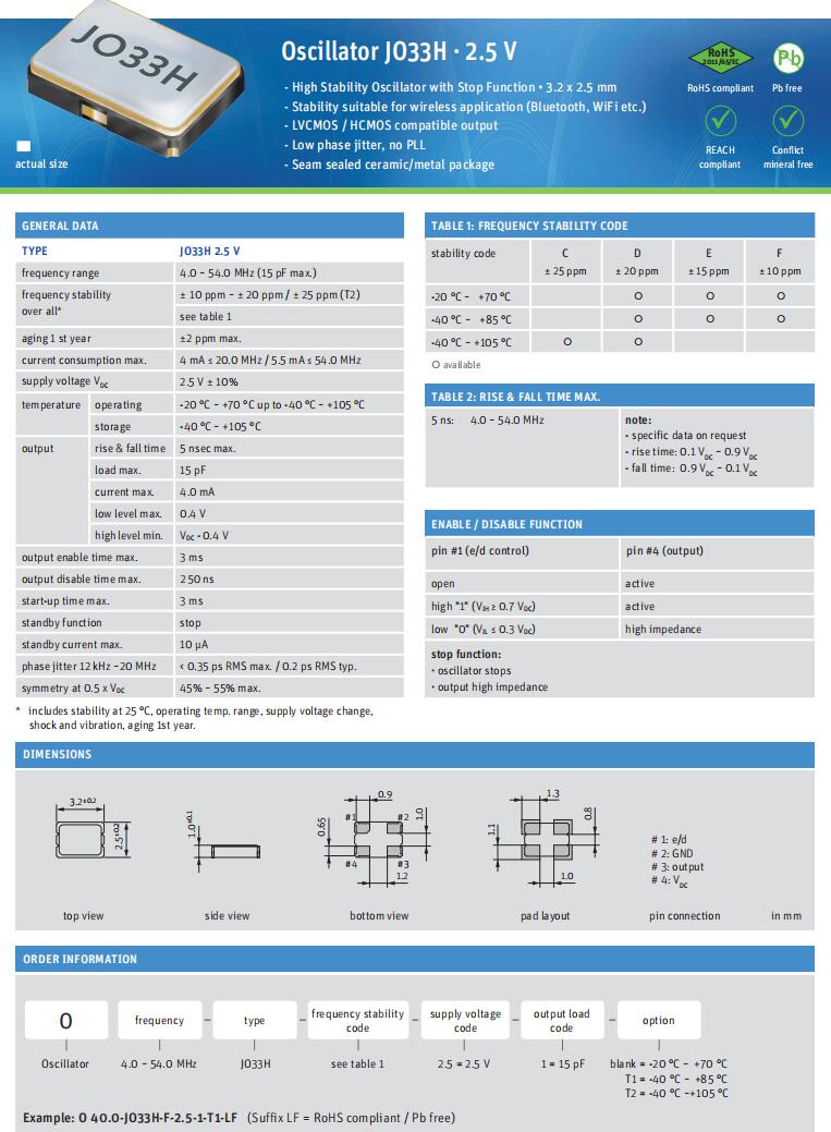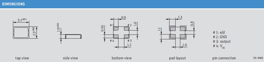 -高穩定性振蕩器與停止功能•3.2 x 2.5 mm