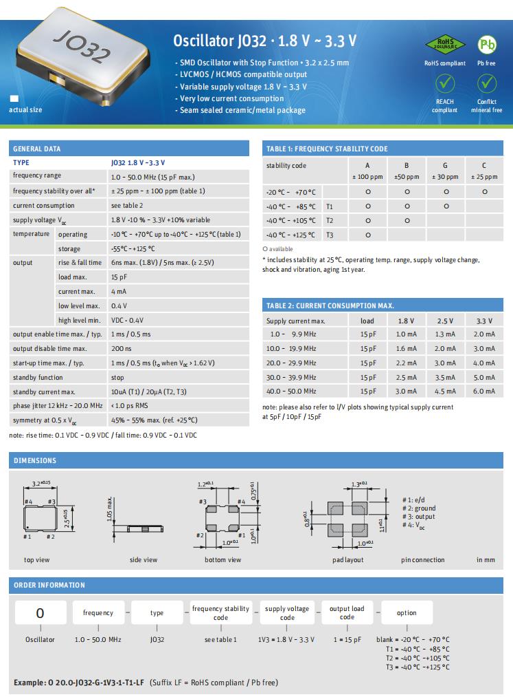 Jauch晶振,O 24.0-JO32-C-2.8-1-LF,6G路由器晶振規(guī)格表
