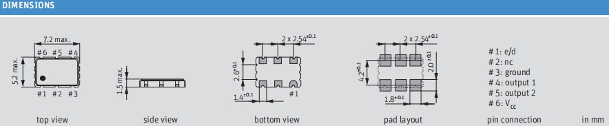 Jauch晶振,O 148.0-JOD75-B-3.3-T1-IP-LF,6G移動無線電晶振尺寸圖