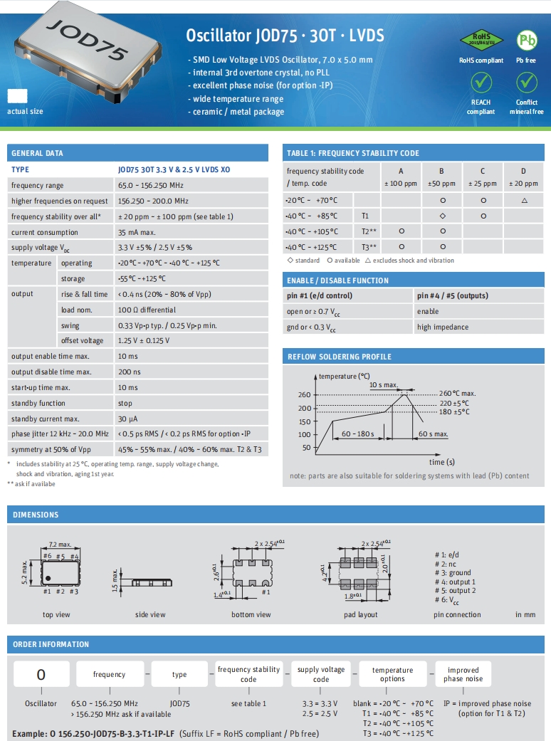 Jauch晶振,O 148.0-JOD75-B-3.3-T1-IP-LF,6G移動無線電晶振規格表