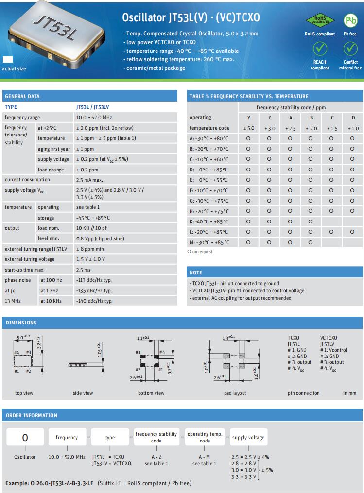 Jauch品牌,O 28.80-JT53L-B-M-2.8-LF,6G無線通信晶振,歐美進口晶振,Jauch晶振,JT53L溫補晶振,O 28.80-JT53L-B-M-2.8-LF晶振,TCXO晶振,有源晶振,石英晶體振蕩器,5032mm晶振,SMD晶體,頻率28.8MHz,電壓2.8V,工作溫度-30~85°C,頻率穩定性2.0ppm,高可靠性晶振,低相位噪聲晶振,低電壓晶振,6G無線通信晶振,通訊設備晶振,調制解調器晶振,電信交換機晶振.