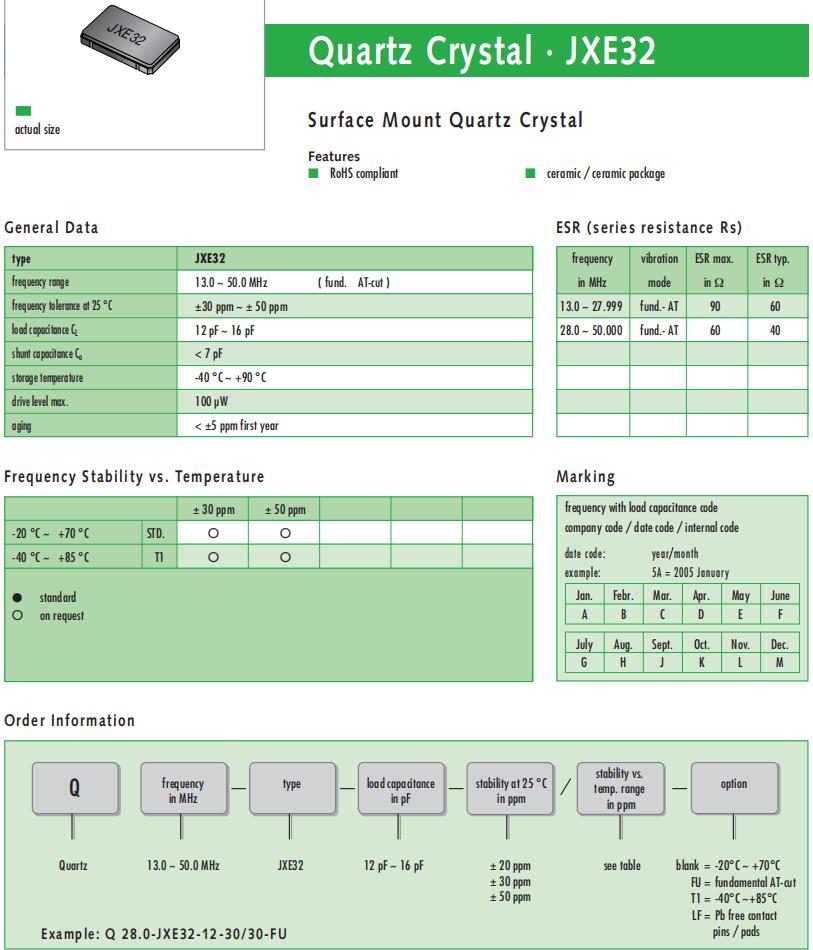 Q 38.0-JXE32-16-20/30-T1-Jauch品牌-6G無線通信晶振,歐美進口晶振,Jauch晶振,JXE32石英晶振,Q 38.0-JXE32-16-20/30-T1晶振,陶瓷諧振器,3225mm晶振,四腳貼片晶振,頻率38MHz,負載16pF,工作溫度-40~85°C,頻率穩定性30ppm,無鉛環保晶振,高可靠性晶振,低電阻晶振,6G無線通信晶振,便攜式多媒體設備晶振,微處理器時鐘晶振,可穿戴設備晶振.