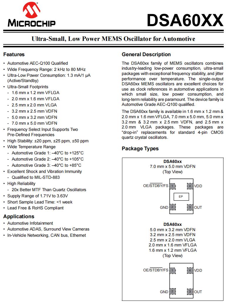 DSC1124CE1-050.0000 | Microchip Technology | DSC1124 | 50MHz | 2.25 V ~ 3.6 V | 0.126" L x 0.098" W (3.20mm x 2.50mm) |