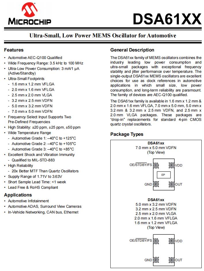 DSC1124CE1-050.0000T | Microchip Technology | DSC1124 | 50MHz | 2.25 V ~ 3.6 V | 0.126" L x 0.098" W (3.20mm x 2.50mm) |