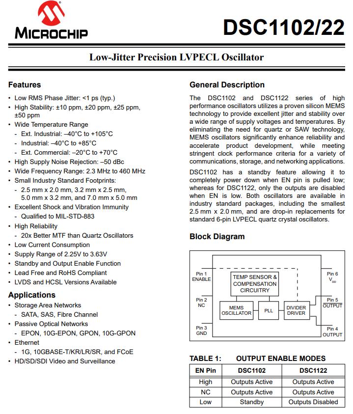DSC1121NE5-125.0000T | Microchip Technology | DSC1121 | 125MHz | 2.25 V ~ 3.6 V | 0.276" L x 0.197" W (7.00mm x 5.00mm) |