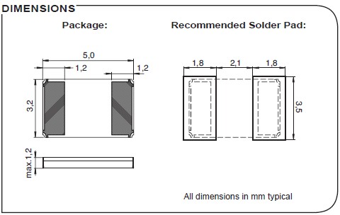 CC2A-T1AH-26.000MHz-20.0pF-50ppm-TC-QI,5032mm晶振,6G以太網(wǎng)晶振尺寸圖