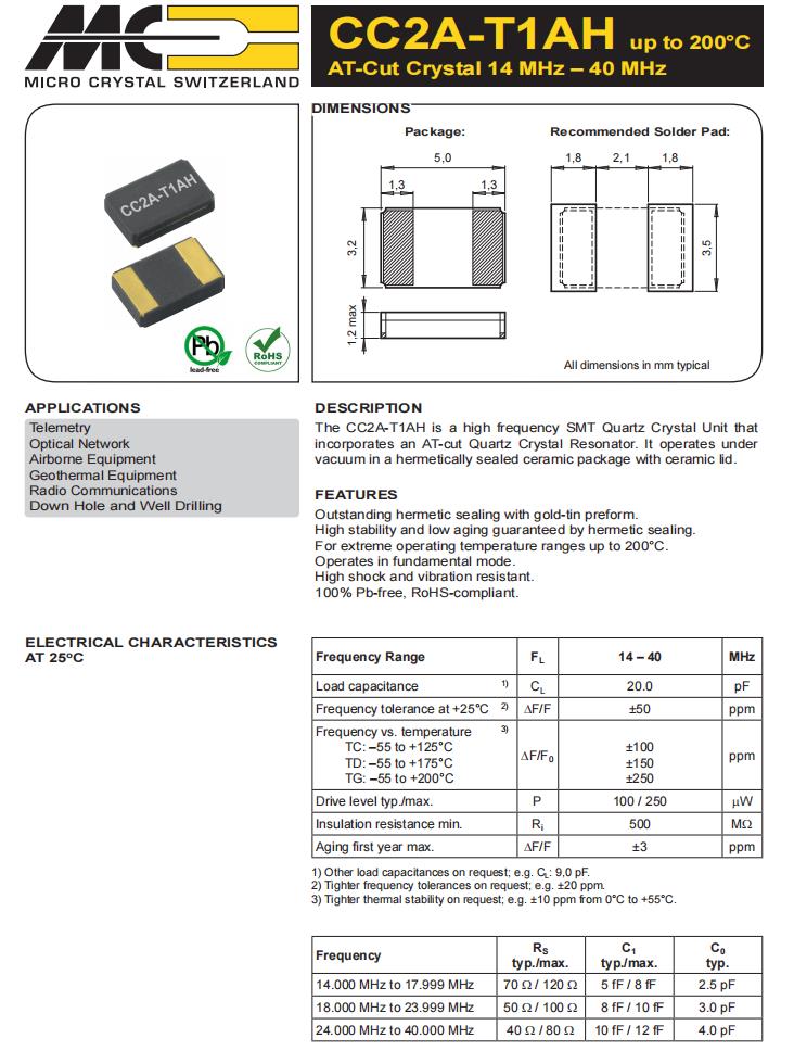 CC2A-T1AH-26.000MHz-20.0pF-50ppm-TC-QI,5032mm晶振,6G以太網(wǎng)晶振,瑞士微晶晶振,CC2A-T1AH無源晶振,CC2A-T1AH-26.000MHz-20.0pF-50ppm-TC-QI晶振,石英晶體諧振器,頻率26MHz,負(fù)載20pf,頻率穩(wěn)定性50ppm,工作溫度-55~125°C,5032mm晶振,耐高溫晶振,低老化晶振,6G以太網(wǎng)晶振,光學(xué)網(wǎng)絡(luò)晶振,機(jī)載設(shè)備晶振,地?zé)嵩O(shè)備晶振,無線電通信設(shè)備晶振.