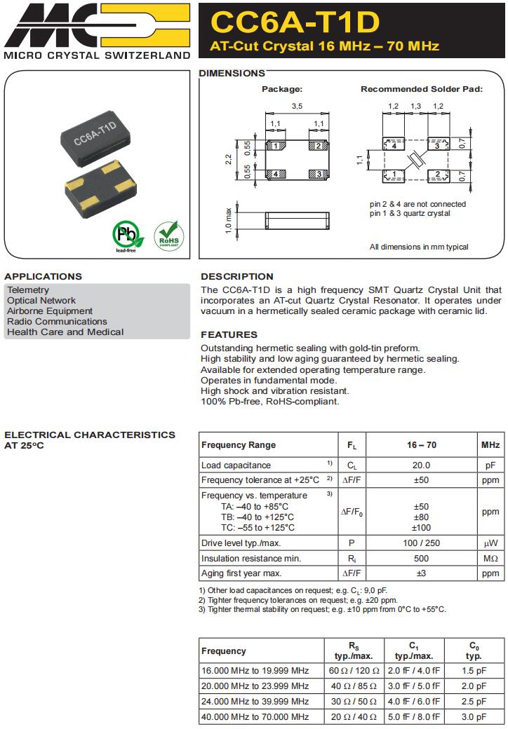 CC4V-T1A-1.000MHz-10pF-100PPM-TA-QC | Micro Crystal | 晶體 1.000 MHz 10.0 pF +/-100 PPM -40/+85C |