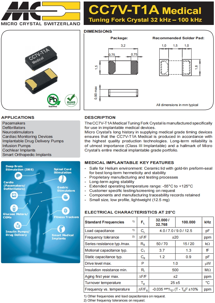 CM7V-T1A-32.768kHz-12.5pF-100PPM-TA-QC | Micro Crystal | 晶體 32.768 kHz 12.5 pF +/-100 PPM -40/+85C |