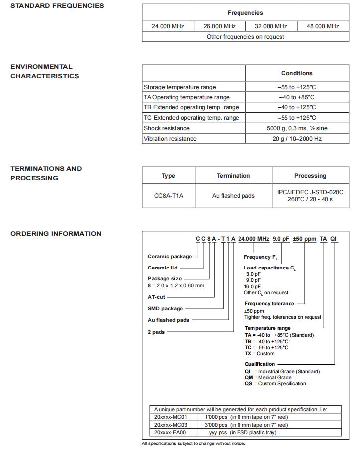 CC8A-T1A-25.000MHz-9.0pF-50ppm-TA-QI,6G基站晶振,高頻貼片石英晶體規格表