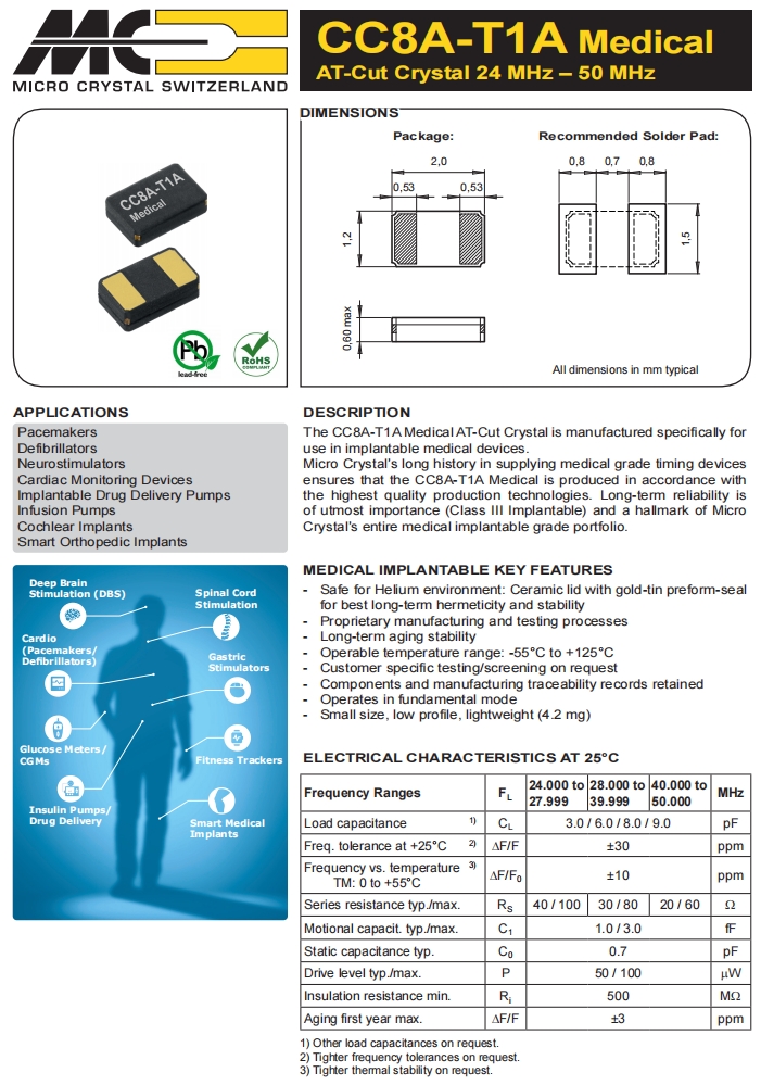 CC4V-T1A-1.000MHz-10pF-100PPM-TA-QC | Micro Crystal | 晶體 1.000 MHz 10.0 pF +/-100 PPM -40/+85C |