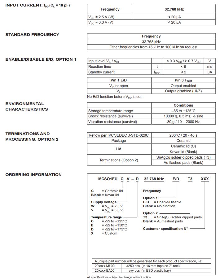 MCSO1EUCV-C-32.768KHZ-E/D-T3,8037mm晶振,6G無線通信晶振規(guī)格表