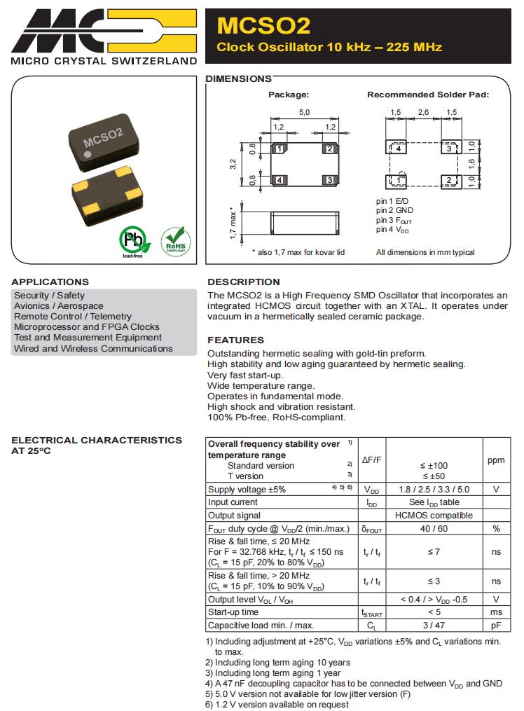 MCSO2FKHVT-C-40.000MHz-E/D-T3|低抖動晶振|6G模塊晶振,瑞士微晶晶振,MCSO2有源晶振,MCSO2FKHVT-C-40.000MHz-E/D-T3晶振,5032mm晶振,進口SMD晶振,頻率40MHz,電壓3.3V,頻率穩(wěn)定性50ppm,工作溫度-55~125°C,高穩(wěn)定性晶振,耐高溫晶振,6G模塊晶振,微處理器晶振,測試和測量設(shè)備晶振,有線和無線通信晶振,航空電子晶振.