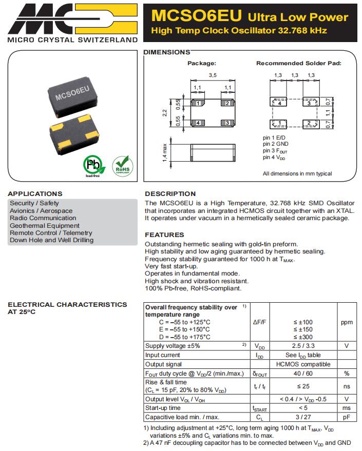 OM-7604-C7-32.768kHz-20PPM-TB-QC | Micro Crystal | 標準時鐘振蕩器 32.768 kHz +/-20 PPM -40/+125C |