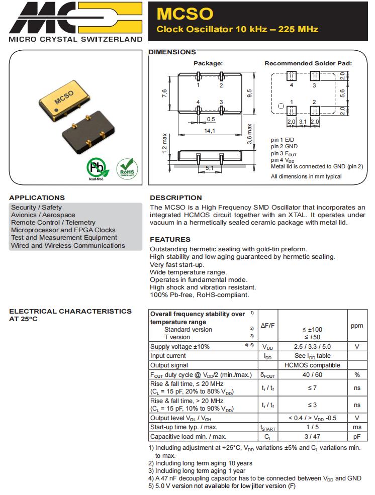 OV-0100-C7-100.000kHz-50PPM-TA-QC | Micro Crystal | 標準時鐘振蕩器 100.0 kHz +/-50 PPM -40/+85C |