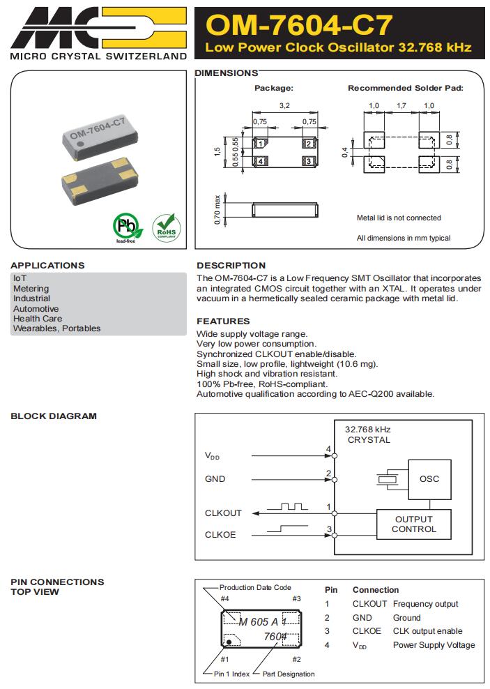 CC7V-T1A-32.768k-12.5pF-20PPM-TA-QA | Micro 晶振 | 晶體 32.768 kHz 12.5 pF +/-20 PPM AEC-Q200 | Crystals |